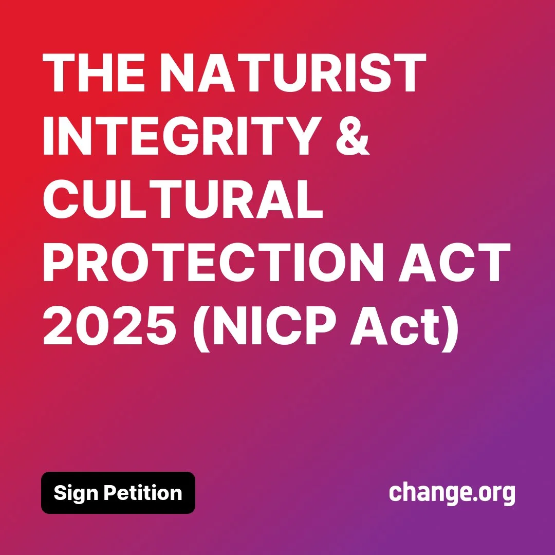 Without such protection, naturist spaces continue to shrink, communities are left in legal grey zones, and entire movements risk being sidelined or even trademarked by private groups. The NICP Act ensures naturism is recognised as cultural heritage to be preserved, not suppressed.